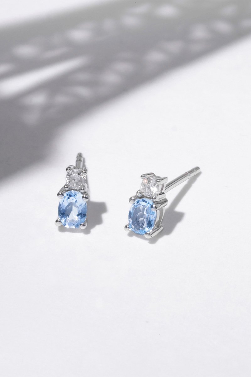 Puces Azur - Or blanc, diamants et topazes