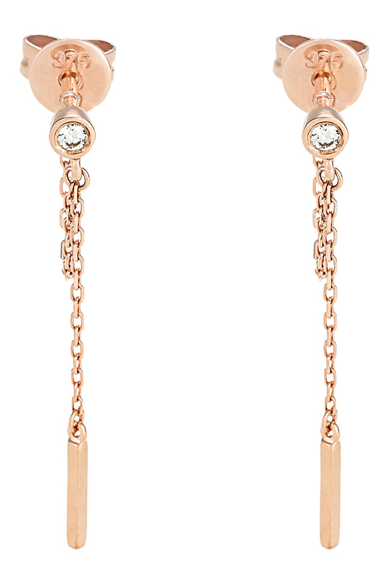 Boucles d'oreilles pendantes en or rose serties d'un diamant.