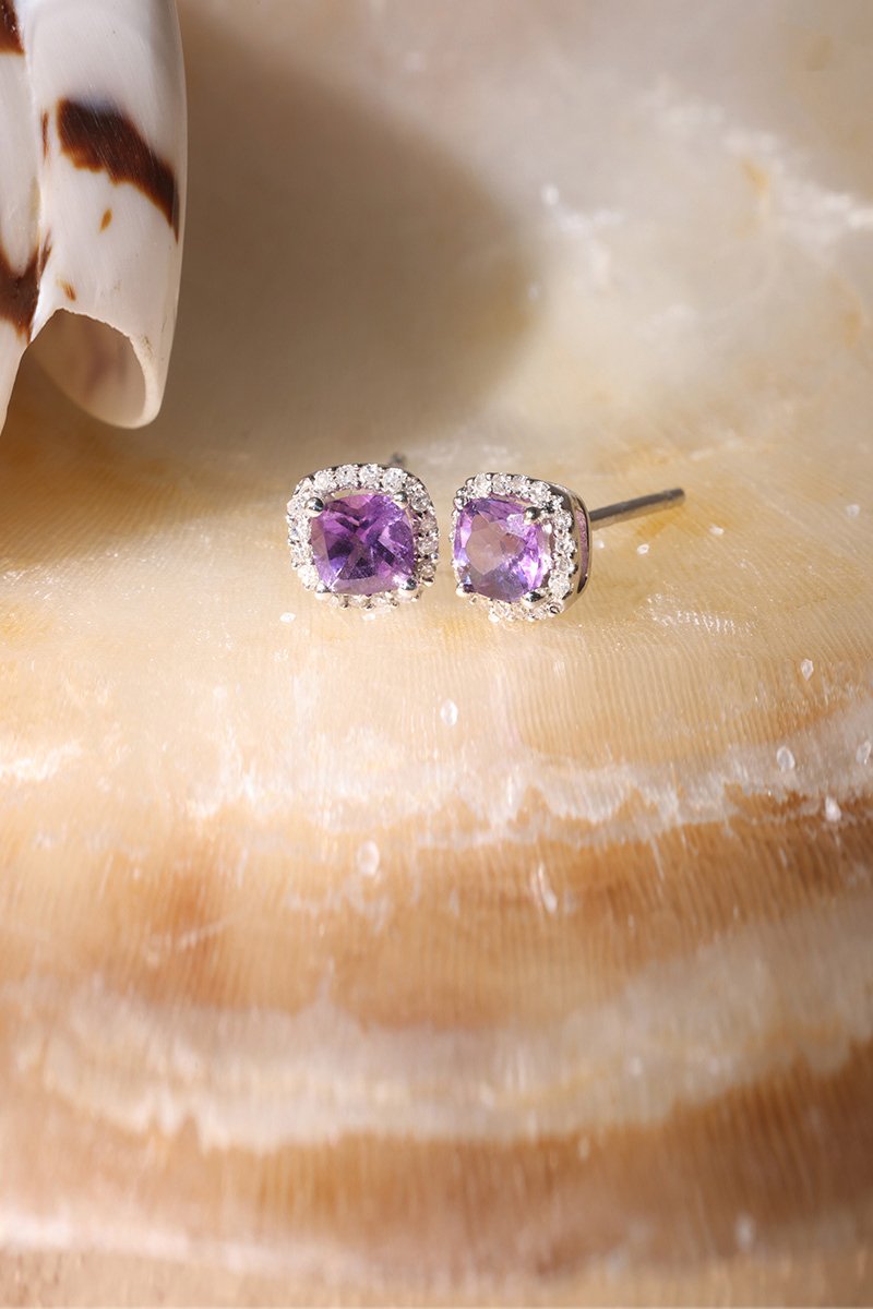 Puces Popi Coussin - Or blanc, diamants et améthyste
