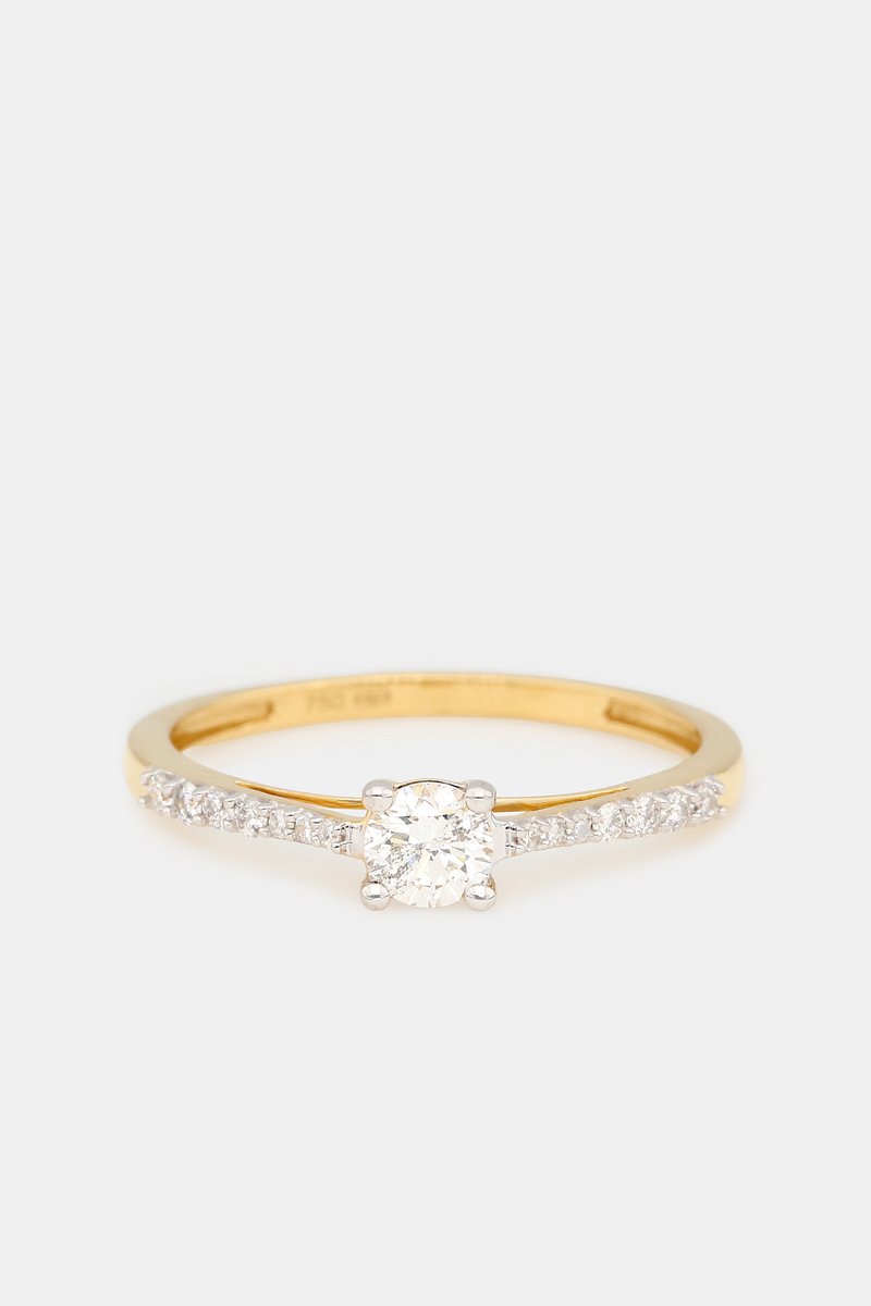Solitaire en or jaune sertie d’un diamant et cristaux.