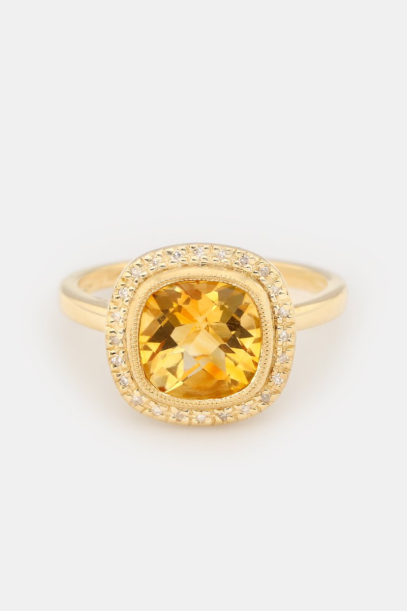 Bague en or jaune sertie de 24 diamants et d’une citrine.