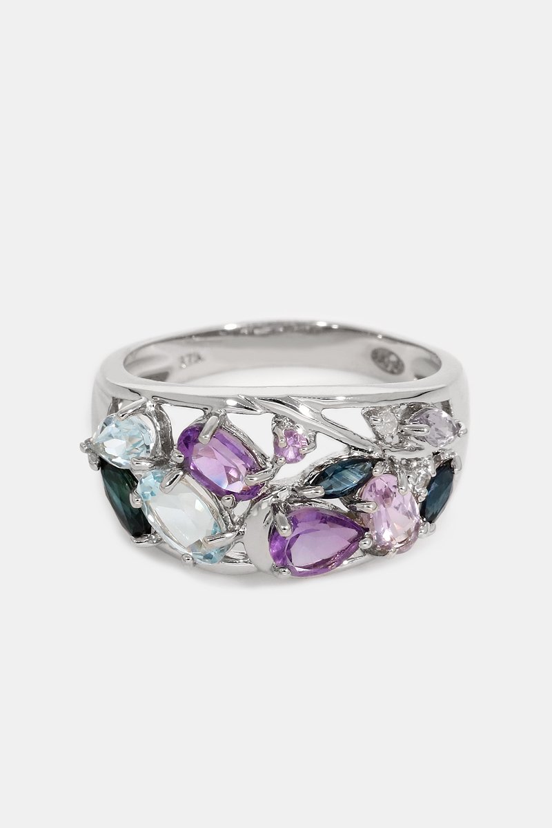 Bague Champêtre - Or blanc, diamant, saphirs, topazes et améthystes