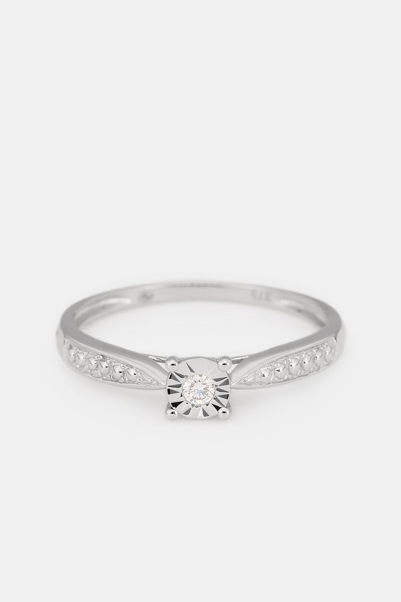 Matière : or blanc 750/1000 et diamants 0,07 carat/14 et solitaire 0,25 carat/1
