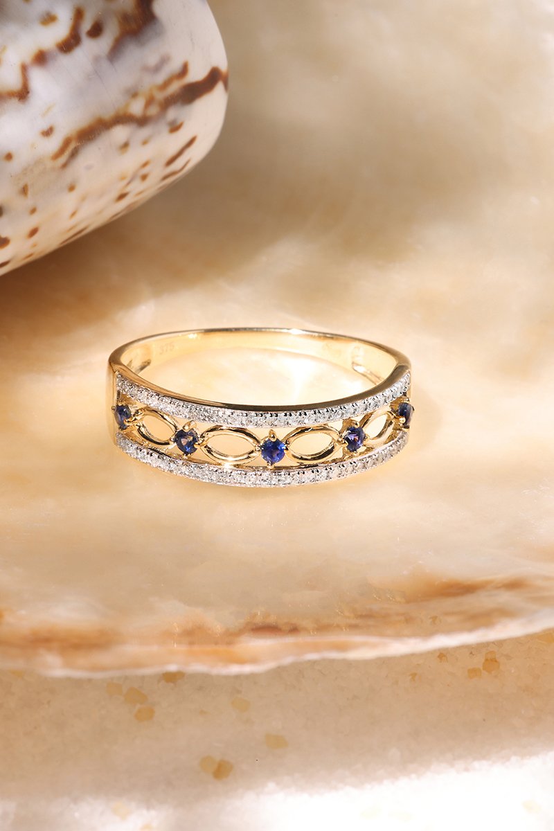 Bague Sapphire Crown - Or jaune, diamants et saphirs
