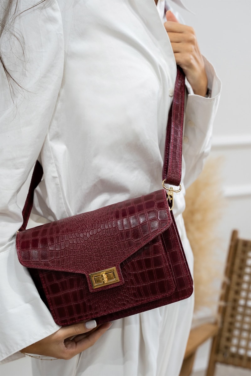 Sac bandoulière en cuir Amber crocos - Bordeaux