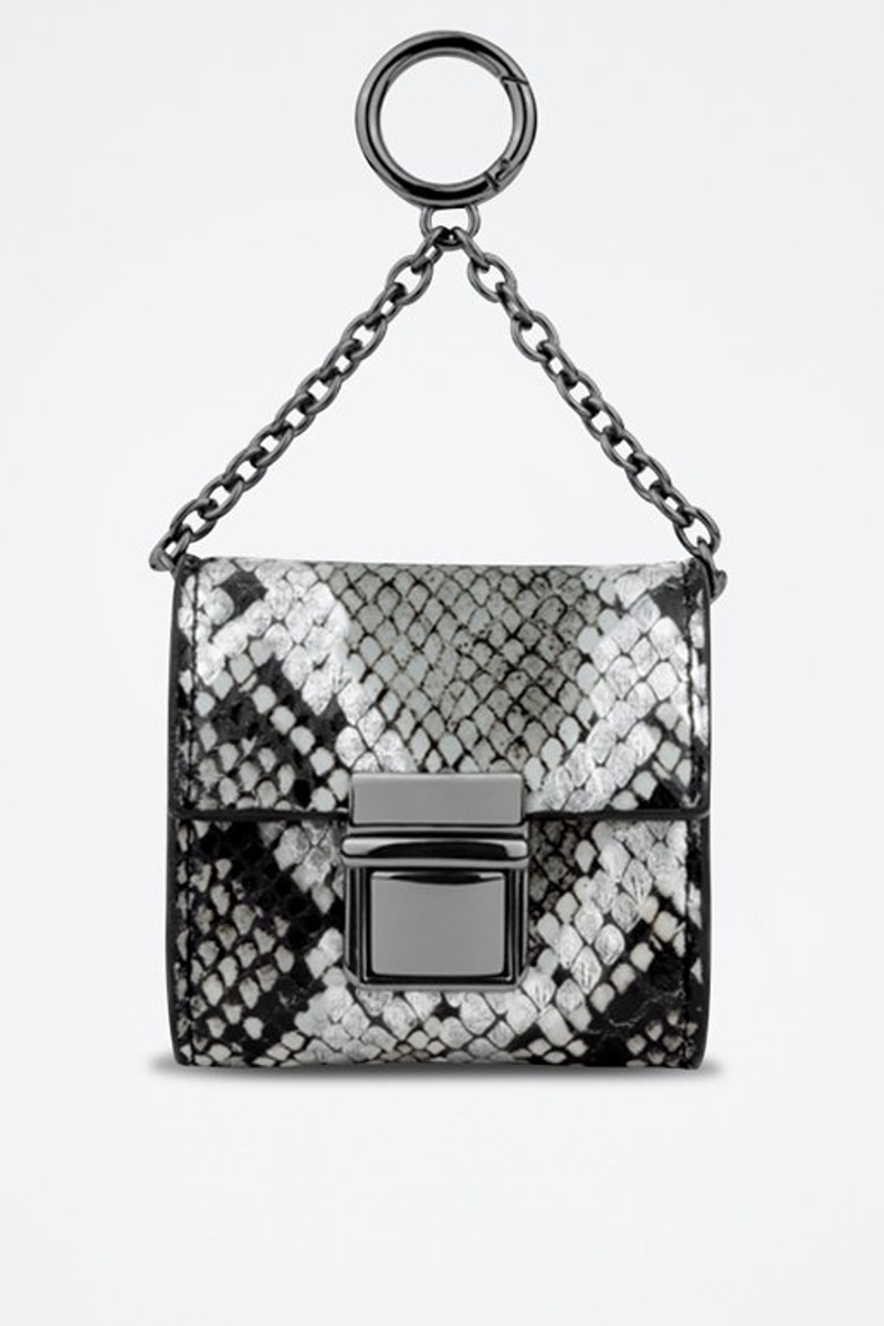 Le Cosmo Mini Bag - Moonlight Snake - est un petit sac qui évoque glamour et mode, avec un imprimé façon serpent métallique et des ornements cloutés audacieux argentés et foncés pour une touche d'opulence saisissante.