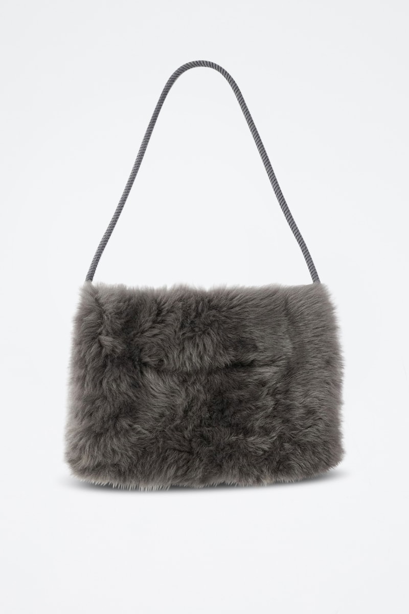 Sac porté épaule en cuir de mouton et fourrure synthétique.