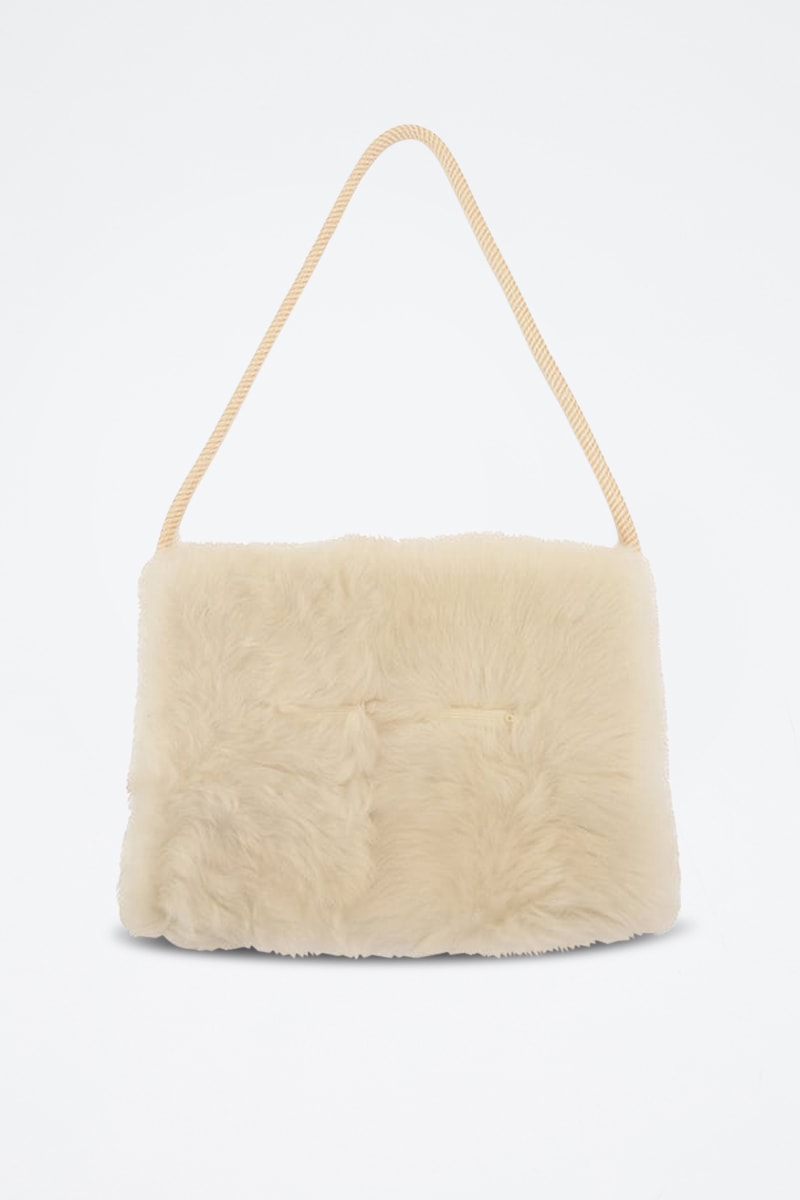 Sac porté épaule en cuir d’agneau et fourrure synthétique.