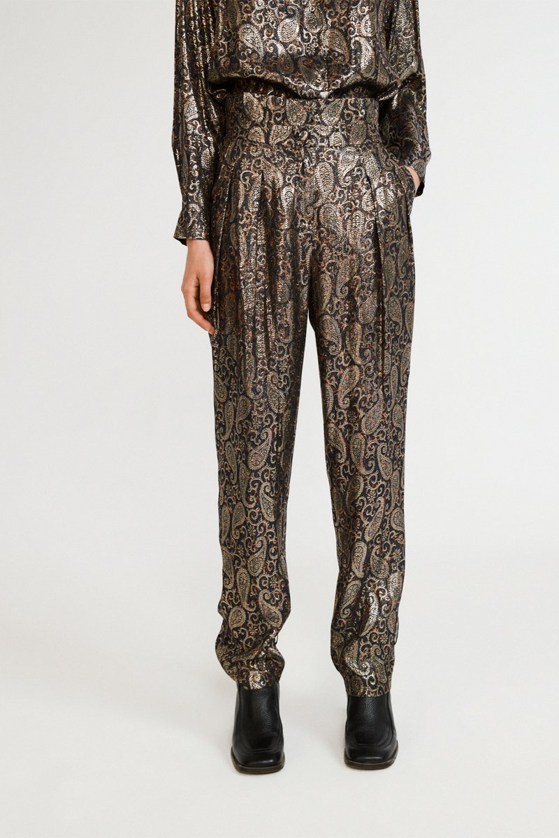 Pantalon casual taille haute - Noir et doré - Claudie Pierlot