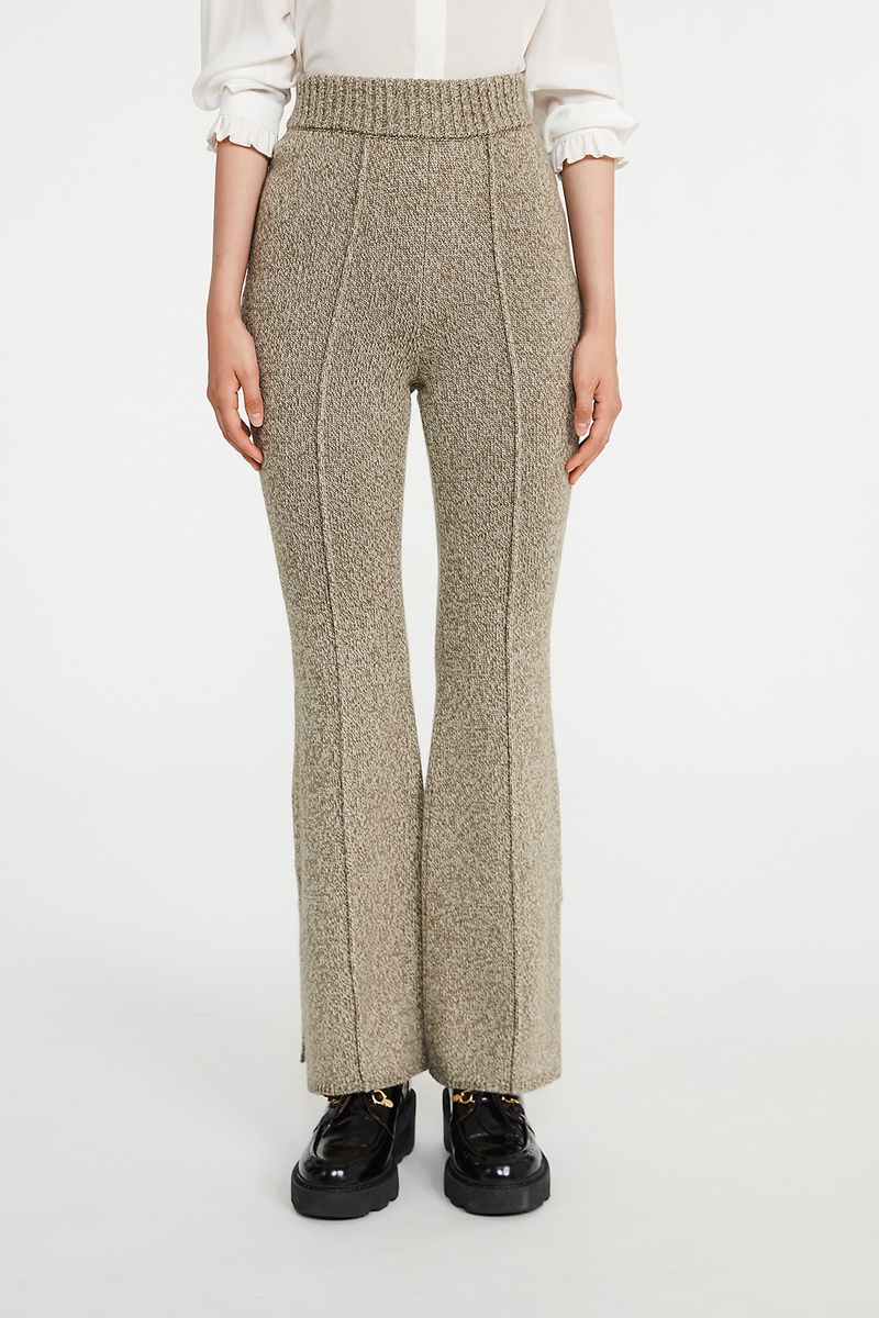 Pantalon wide legs en laine taille haute - Kaki chiné - Claudie Pierlot