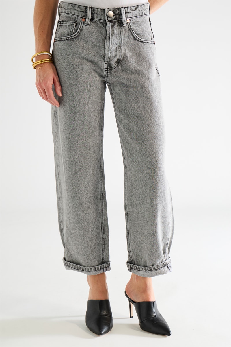 Jean en coton biologique taille haute - Gris clair - Raey
