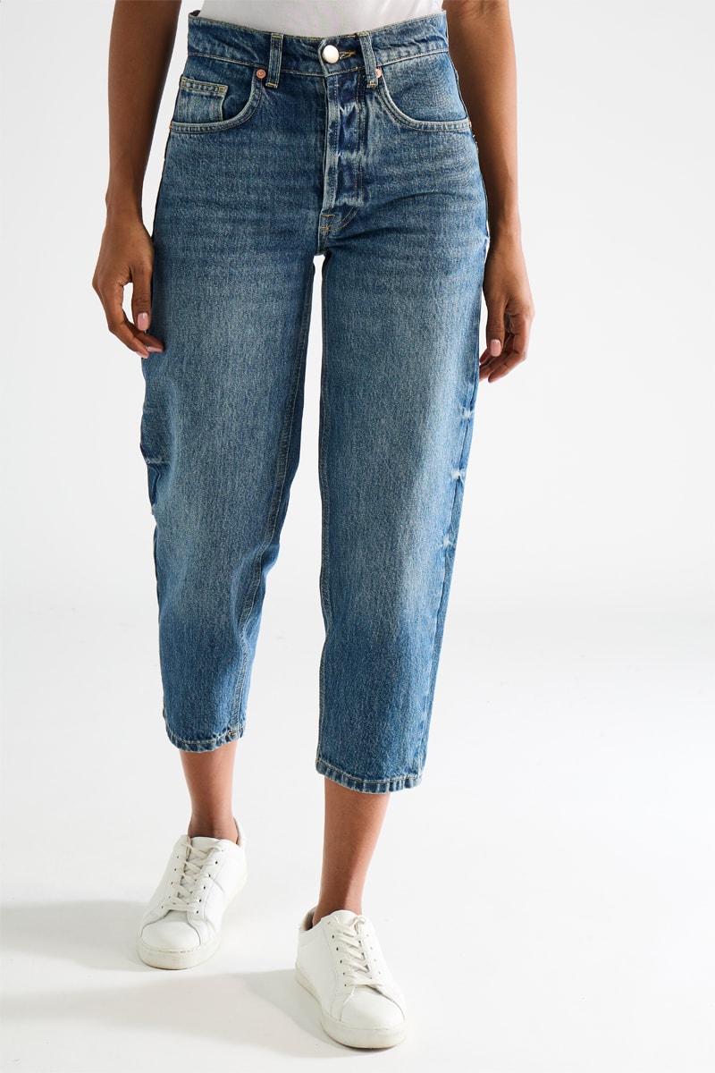 Jean carotte 7/8 en coton biologique taille haute - Bleu cobalt - Raey