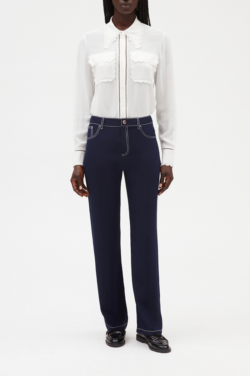 Jean droit en soie - Bleu foncé - Claudie Pierlot