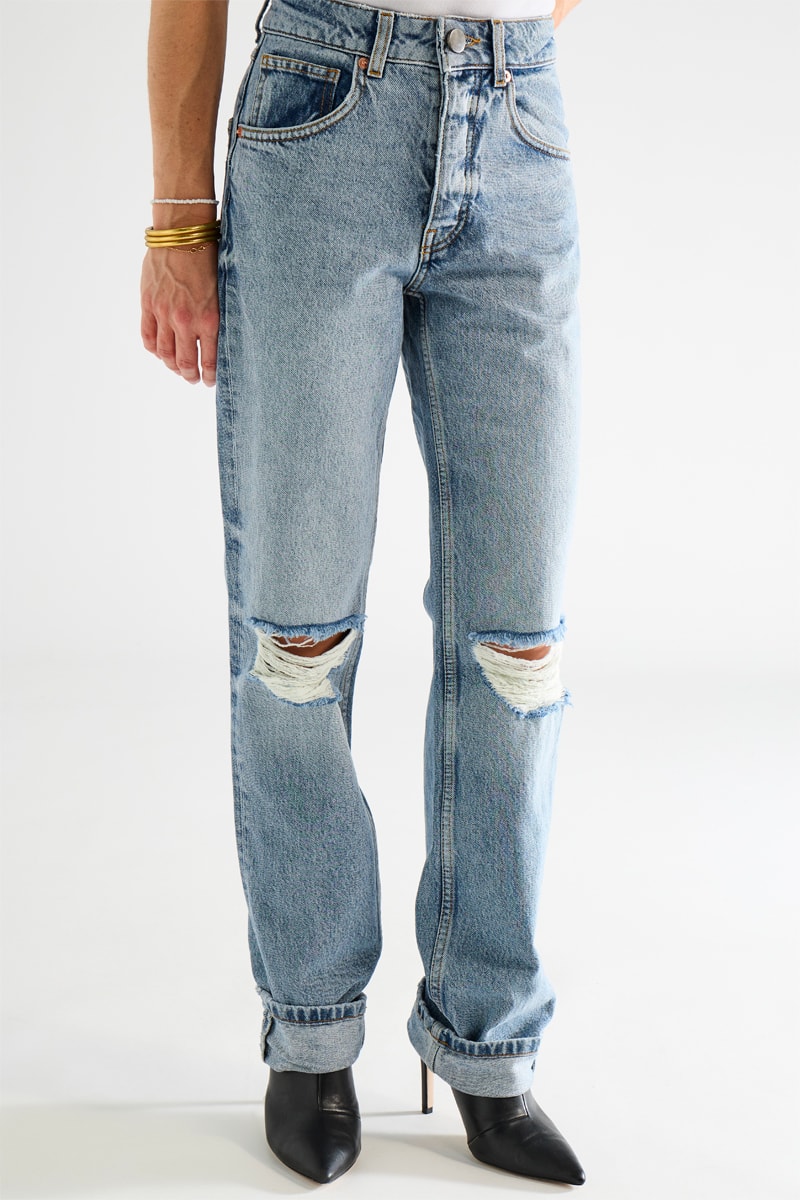 Jean taille haute en coton biologique - Bleu clair - Raey
