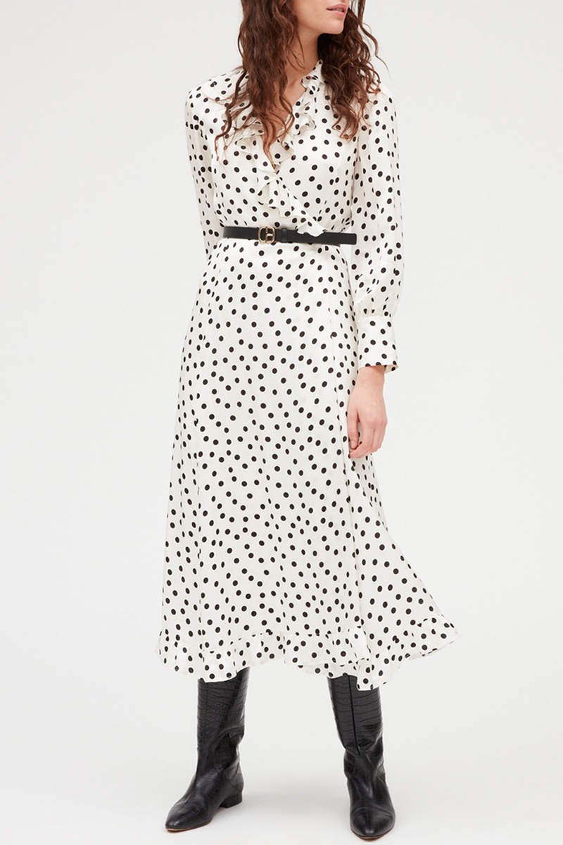 Robe portefeuille mi-longue volantée - Blanc et noir - Claudie Pierlot