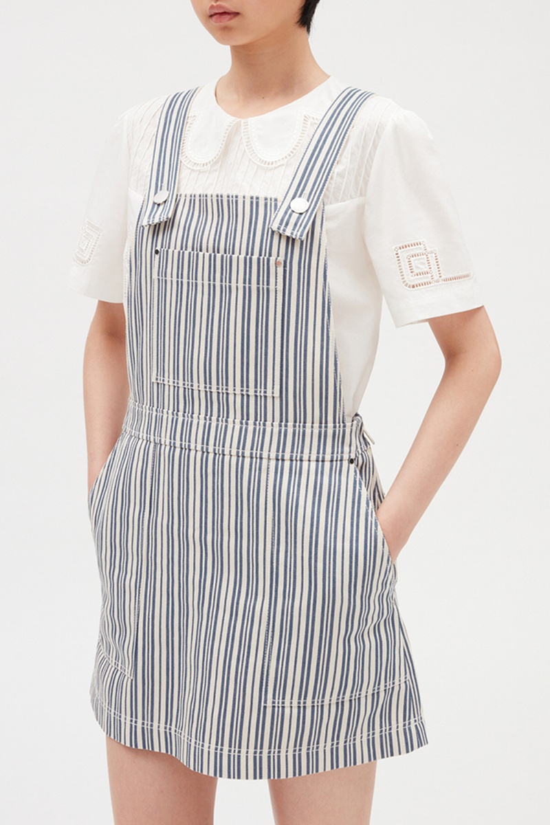Robe courte salopette - Blanc et bleu - Claudie Pierlot