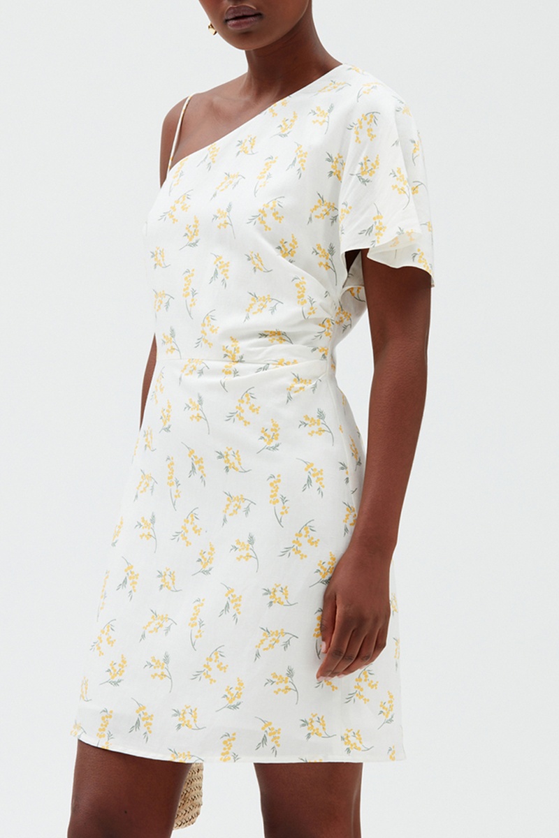 Robe mi-longue asymétrique - Blanc et jaune - Claudie Pierlot