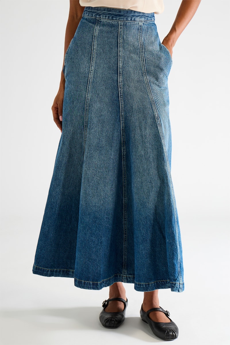 Jupe longue en jean en coton biologique.