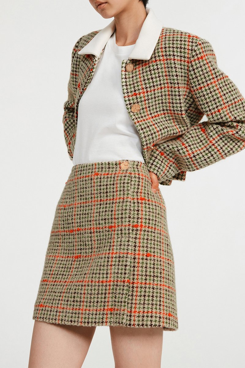Jupe droite taille haute - Beige et noir - Claudie Pierlot