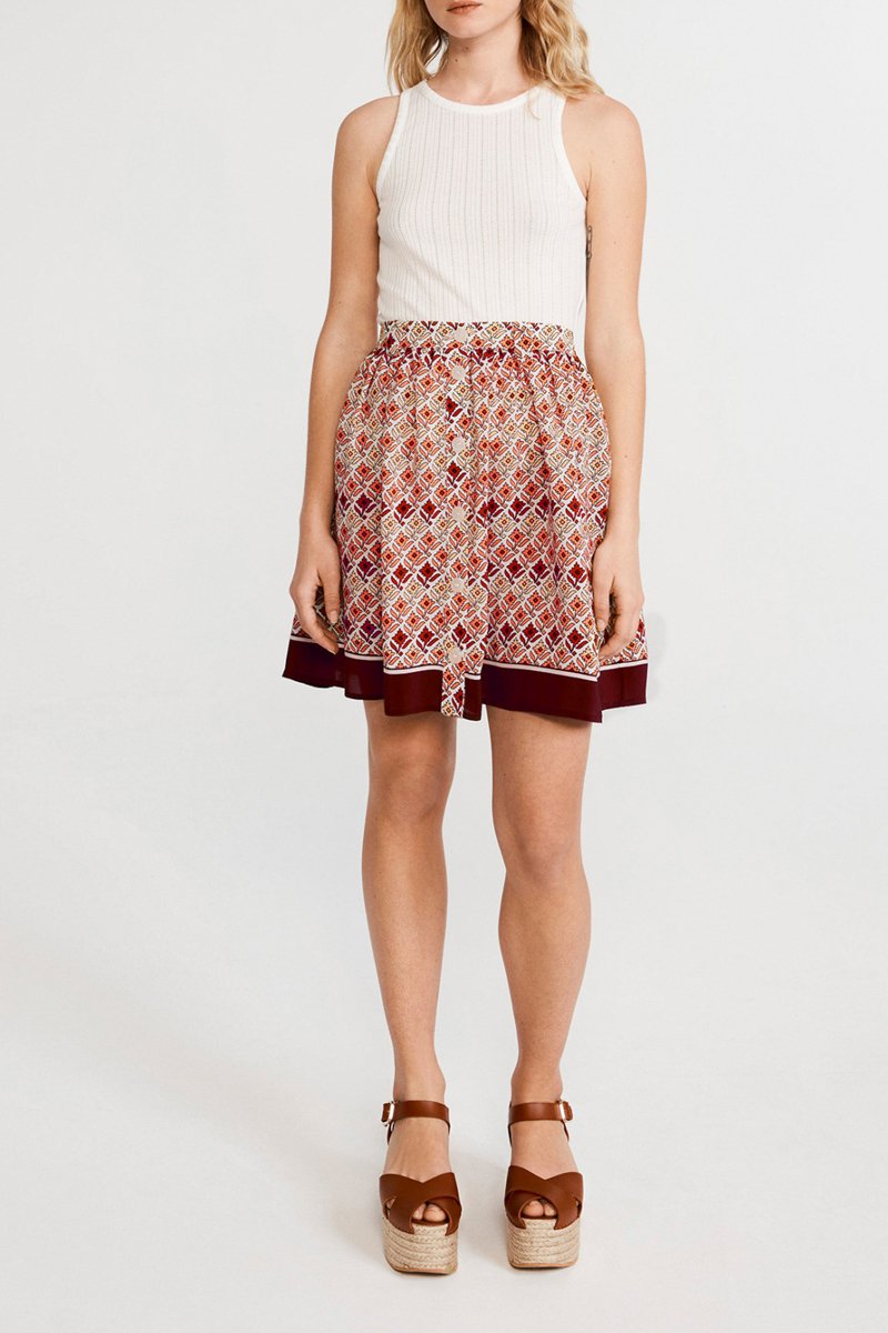 Jupe patineuse en soie taille haute - Bordeaux et saumon - Claudie Pierlot