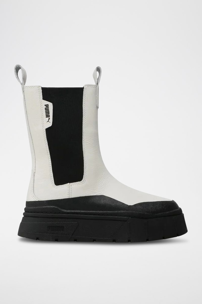 Bottines Chelsea plateformes en cuir Mayze Stack - Ecru et noir - Puma