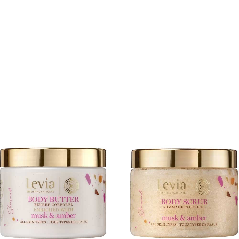 Conçu à base de musc et d'ambre, le gommage permet d'éliminer les cellules mortes et l'excès de sébum tout en resserrant les pores de la peau et en atténuant les imperfections. Le beurre corporel hydrate votre peau en profondeur, freine l'oxydation des cellules et favorise la régénération de la peau. Ses notes épicées, fleuries et sensuelles rendront votre peau délicatement parfumée. Votre peau est plus souple et intensément revitalisée,