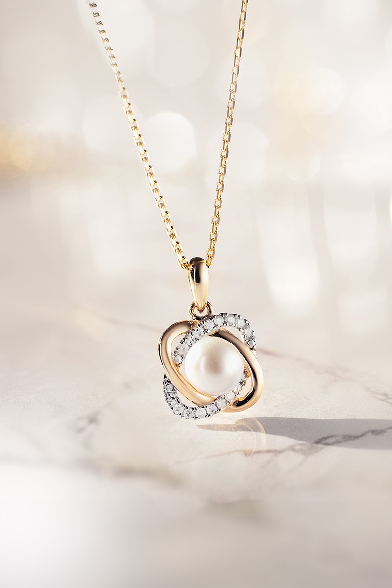 Pendentif Gostivar - Or jaune, diamants et perle de culture