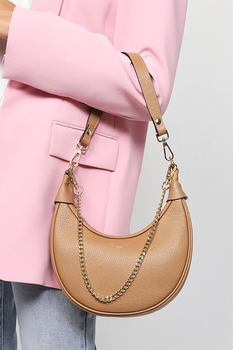 Ce sac à main en cuir est conçu pour s’adapter à toutes vos envies avec ses deux anses amovibles : une en cuir pour un look classique et une en chaîne pour une touche plus sophistiquée. Son grand compartiment intérieur offre un espace généreux pour vos indispensables, complété par une poche zippée pour un rangement sécurisé. Un accessoire à la fois chic et fonctionnel, idéal pour sublimer votre style en toute occasion.