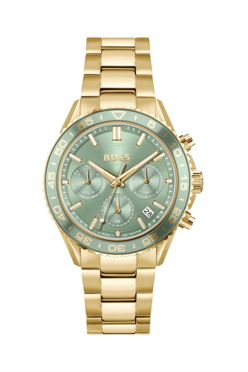 Montre à quartz en acier plaqué or fin - Chronographe - Doré
