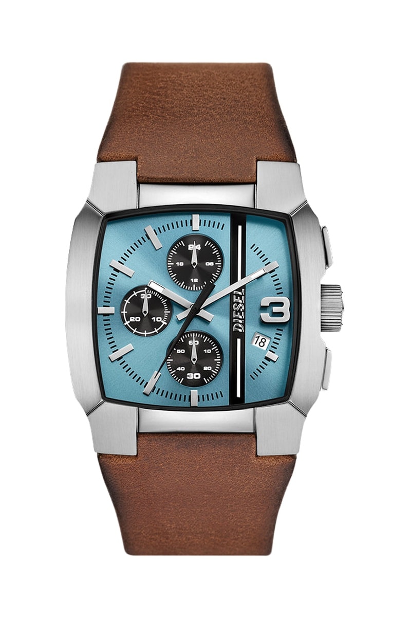 Montre à quartz en cuir - Chronographe - Marron et argenté