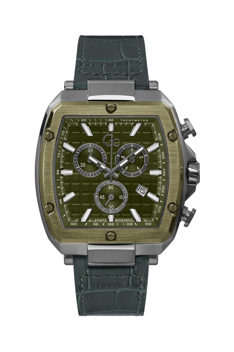 Montre à quartz en cuir véritable et silicone - Tachymètre - Vert