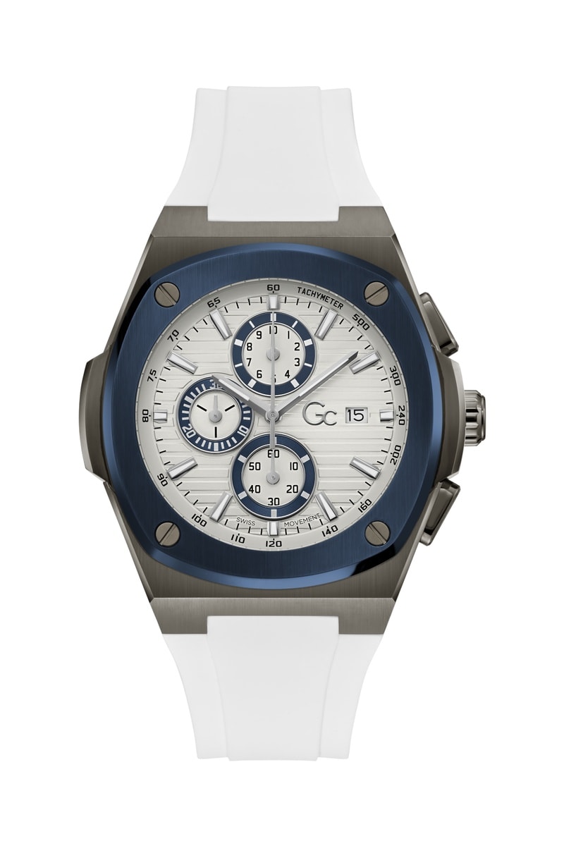 Montre à quartz en silicone - Tachymètre - Blanc et bleu