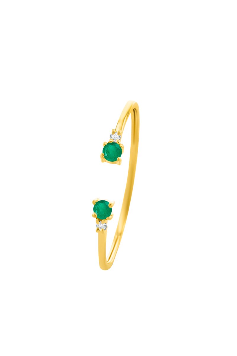 Bague en or jaune sertie de 2 diamants et de 2 émeraudes.