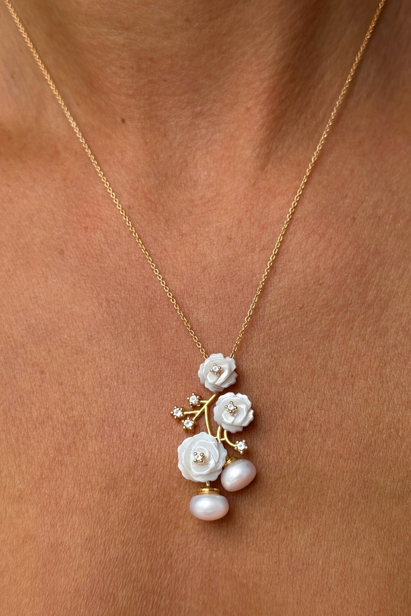 Pendentif - Or jaune, topazes, nacre et perles de culture