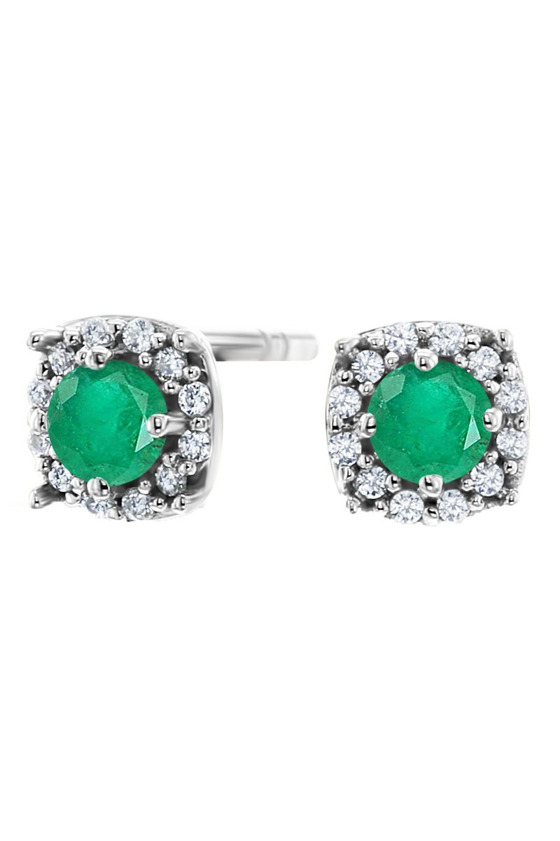 Puces en or blanc serties de 12 topazes et de 1 émeraude.