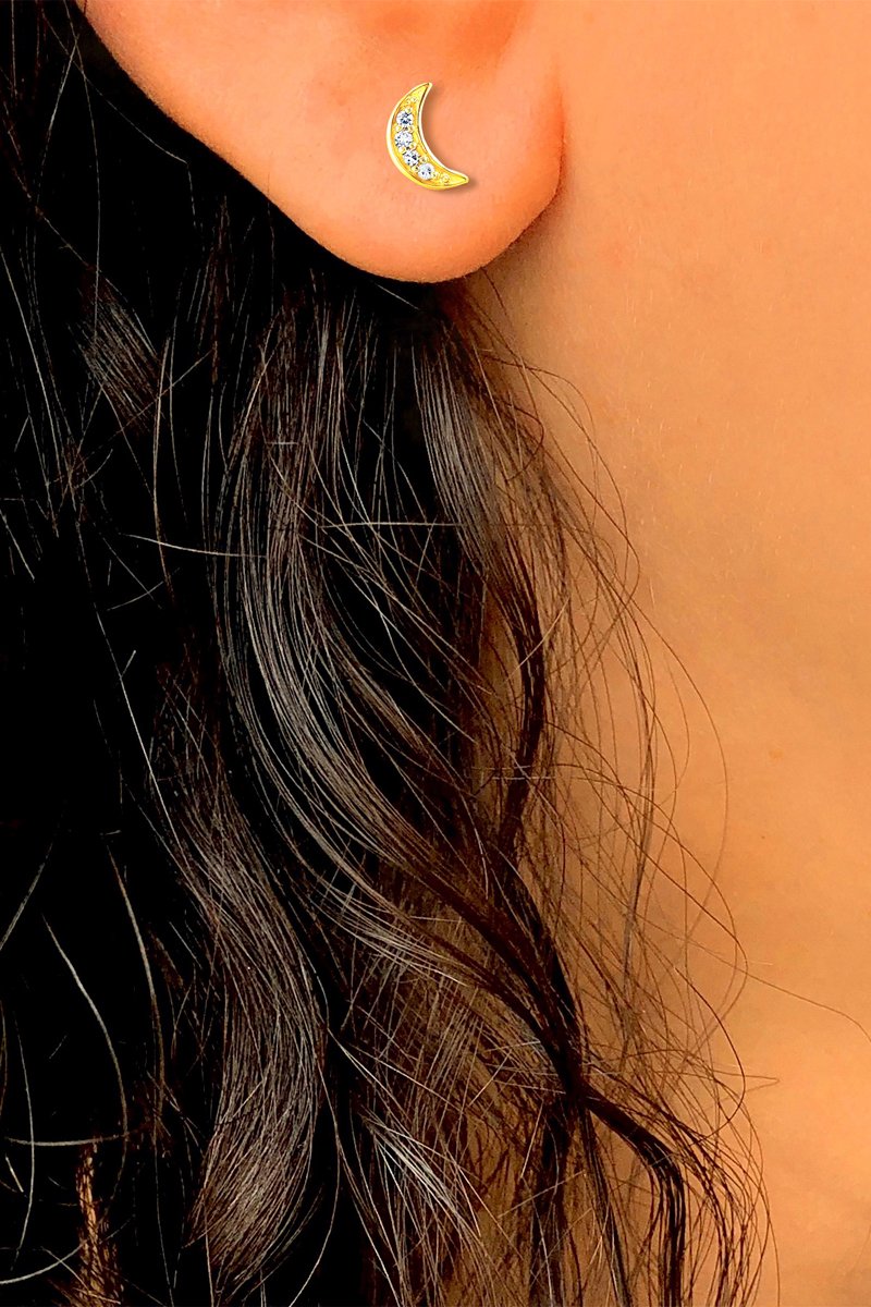 Puces en or jaune serties de 4 diamants.