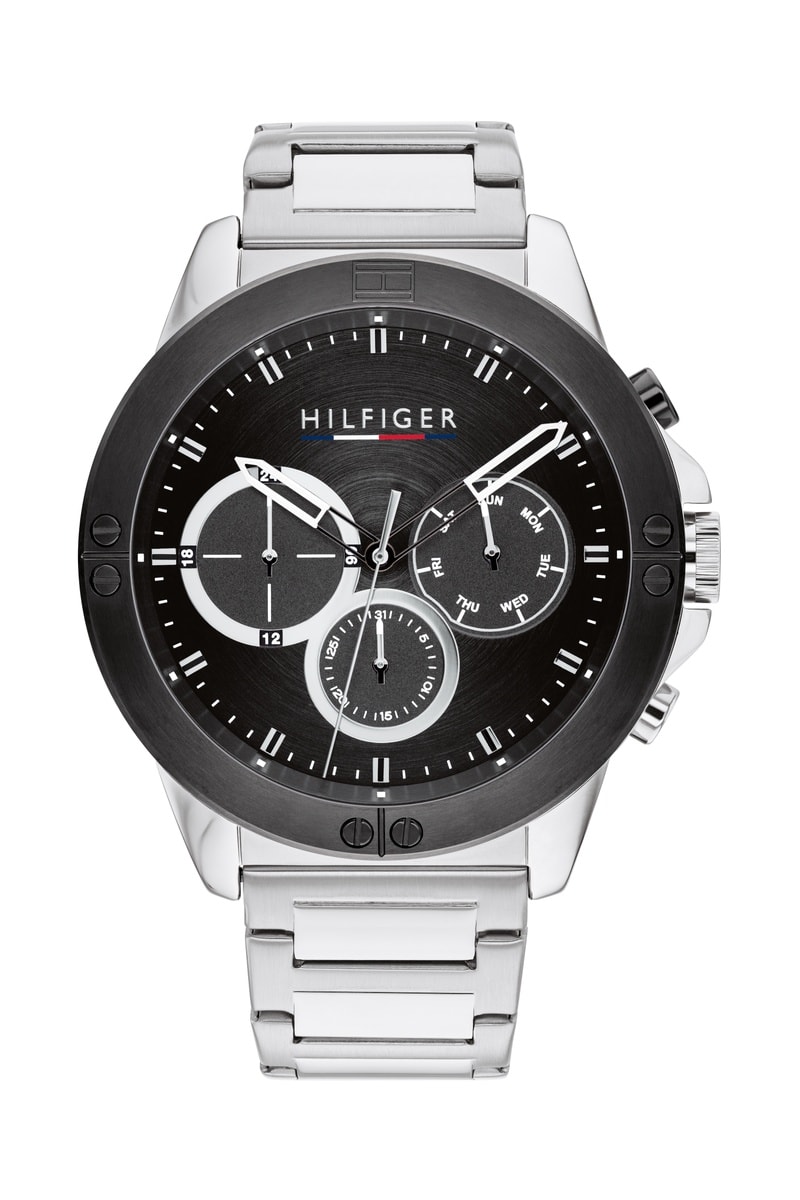 Montre en acier - Chronographe - Argenté et noir