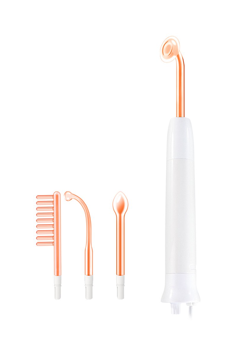 Coffret d'électrothérapie haute fréquence pour visage comprenant 4 têtes spécifiques.