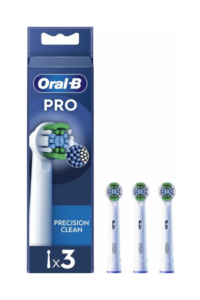 Les filaments de la brossette Oral-B Pro Precision Clean éliminent la plaque dentaire pour un meilleur nettoyage dent par dent qu’avec une brosse à dents manuelle classique.