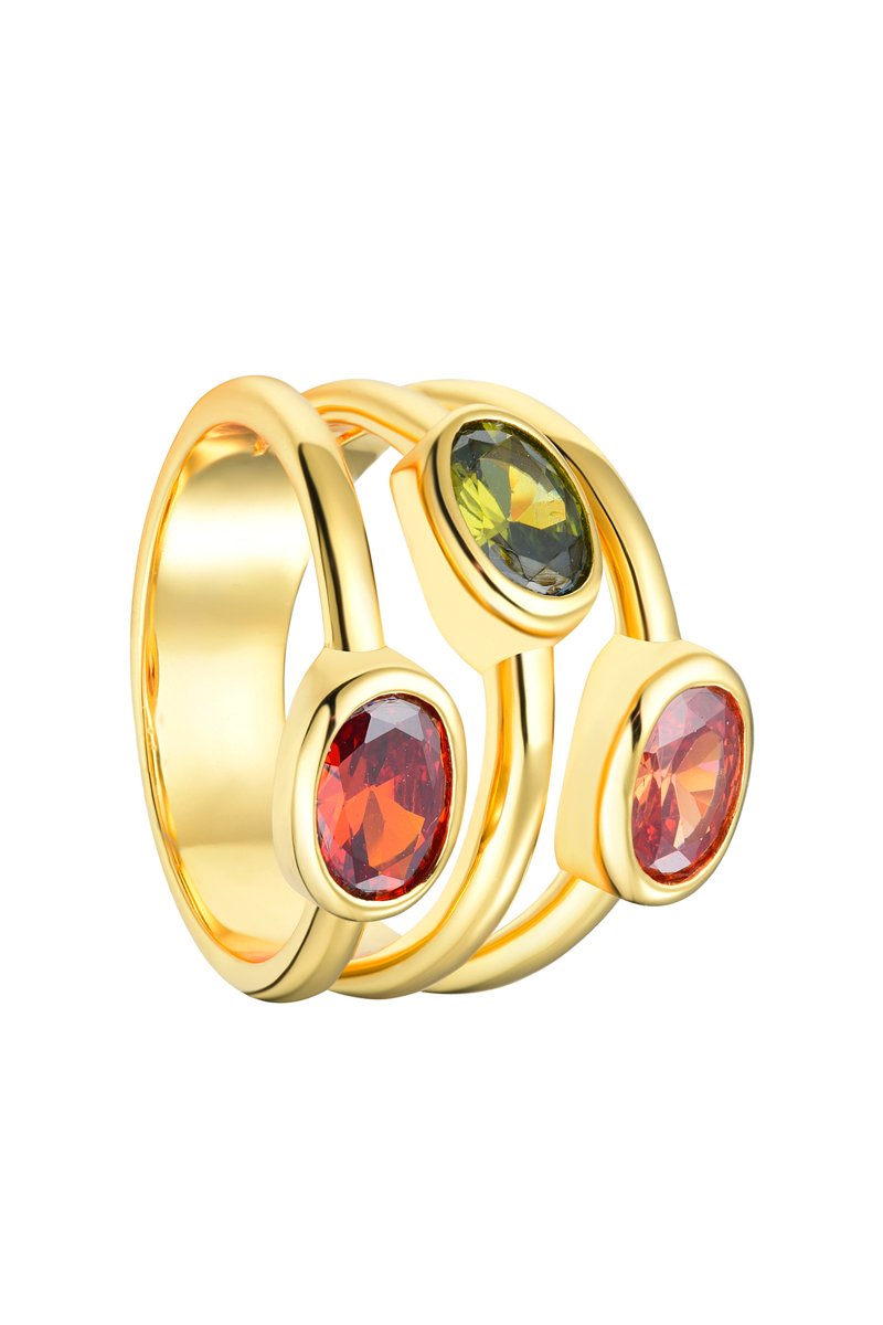 Bague - Argent plaqué or jaune, améthyste, saphir et spinelle
