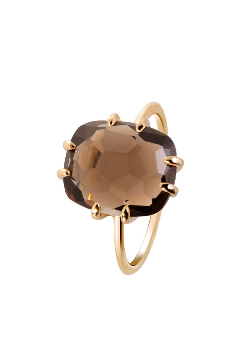 Bague en argent plaqué or jaune sertie d'un quartz fumé.
