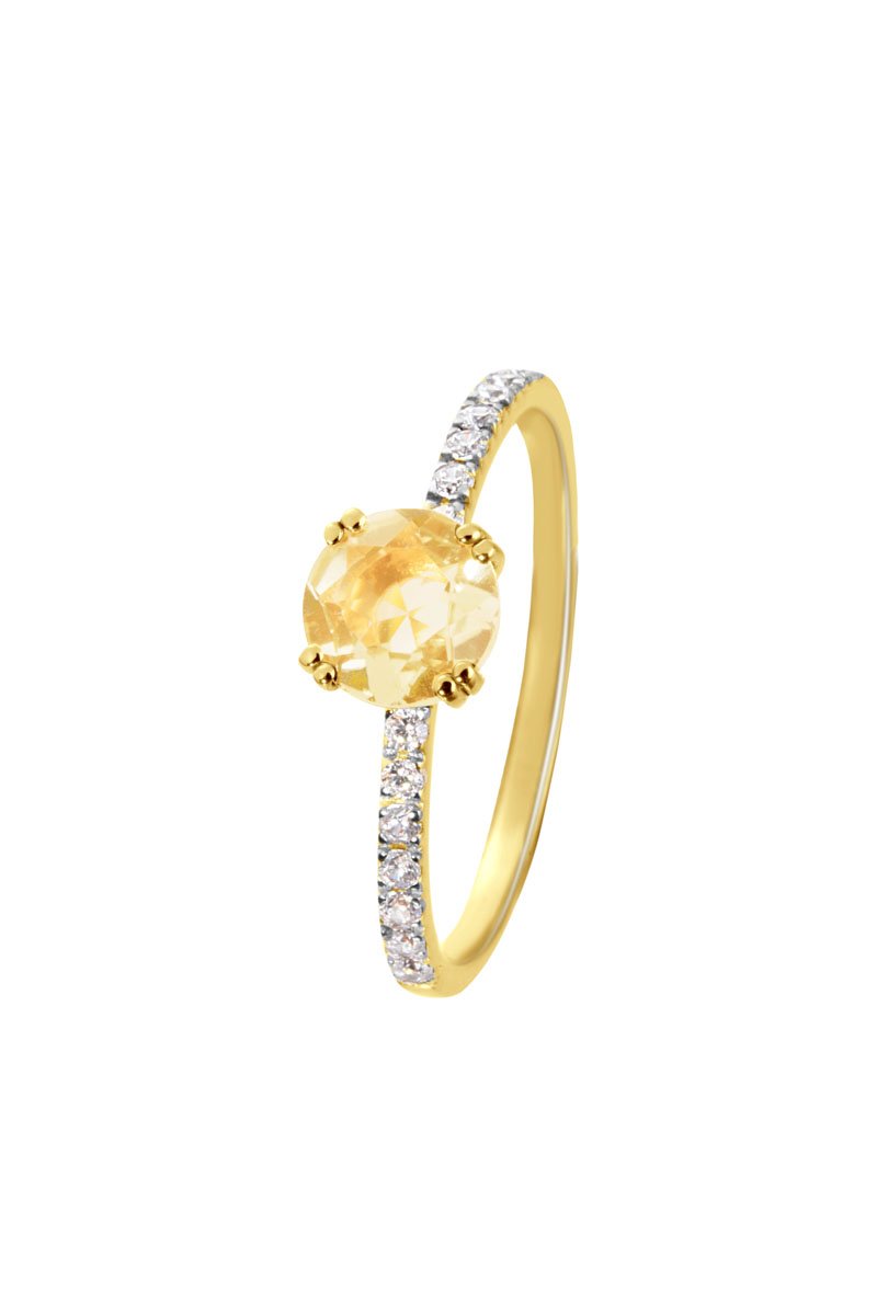 Bague en argent plaqué or jaune sertie d'une citrine.