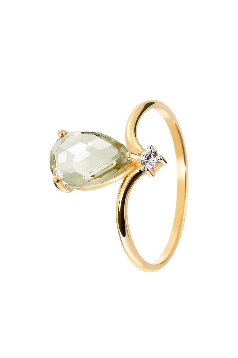Bague en argent plaqué or jaune sertie d'une améthyste et d'un zirconium.