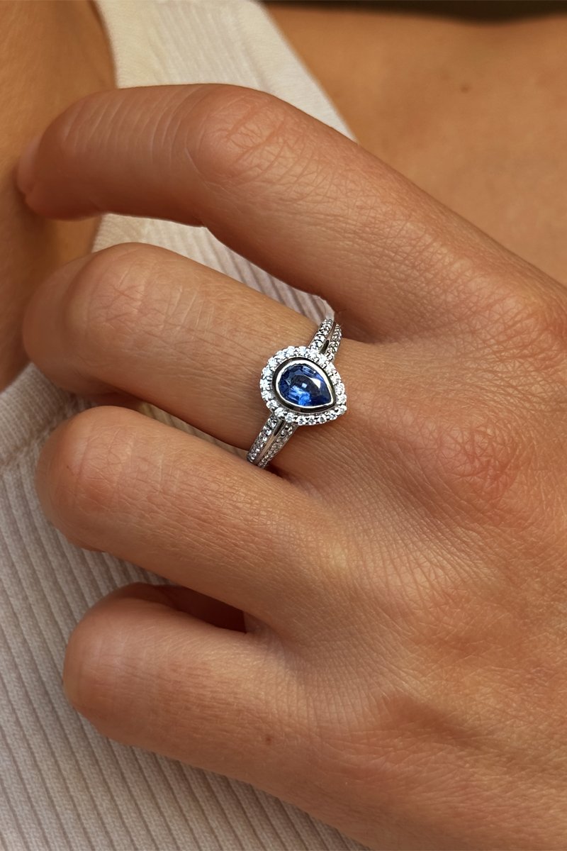 Bague - Argent, disthène et zircons