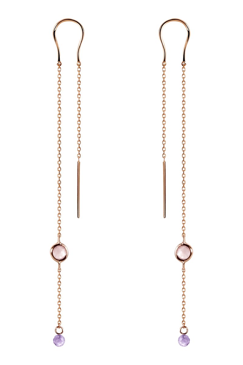 Boucles d'oreilles - Argent plaqué or rose, quartz et améthystes