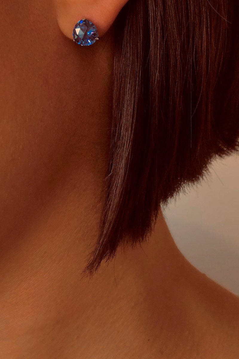 Puces en argent serties d'une tanzanite.