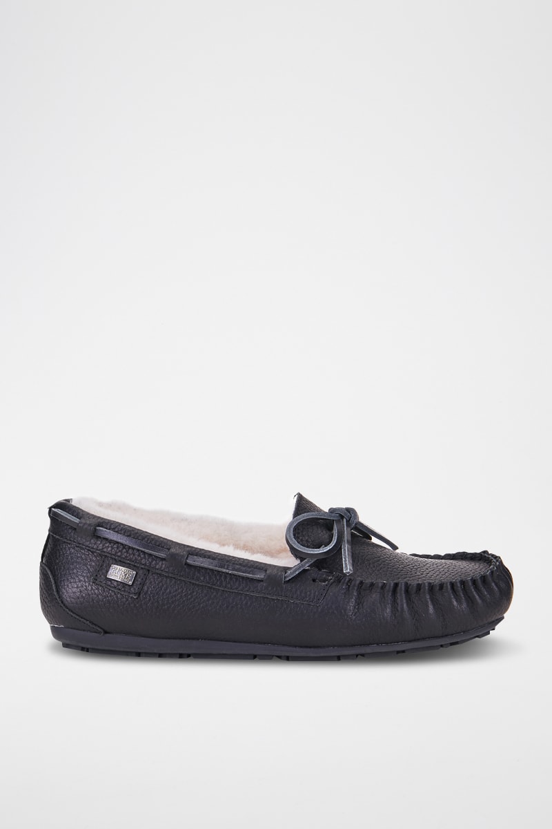 Chaussures bateau fourrées en cuir de mouton pailleté.