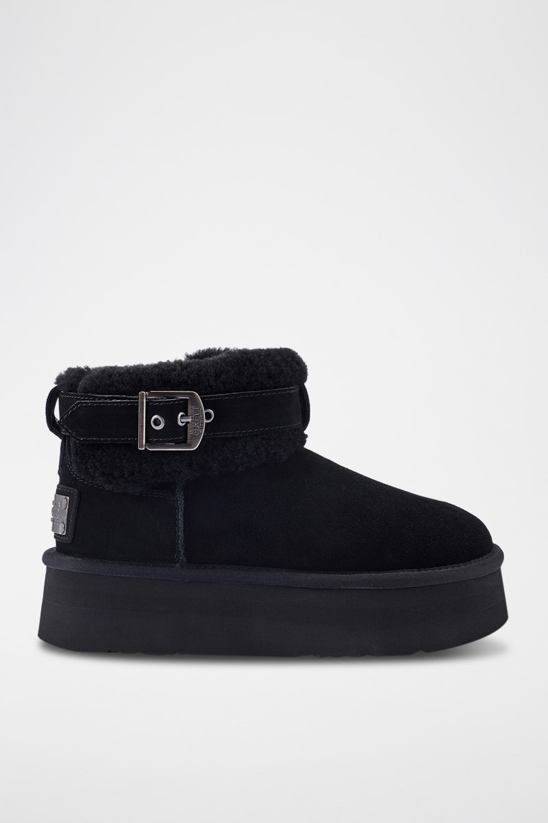 Bottines plateformes fourrées en cuir de mouton nubuck.