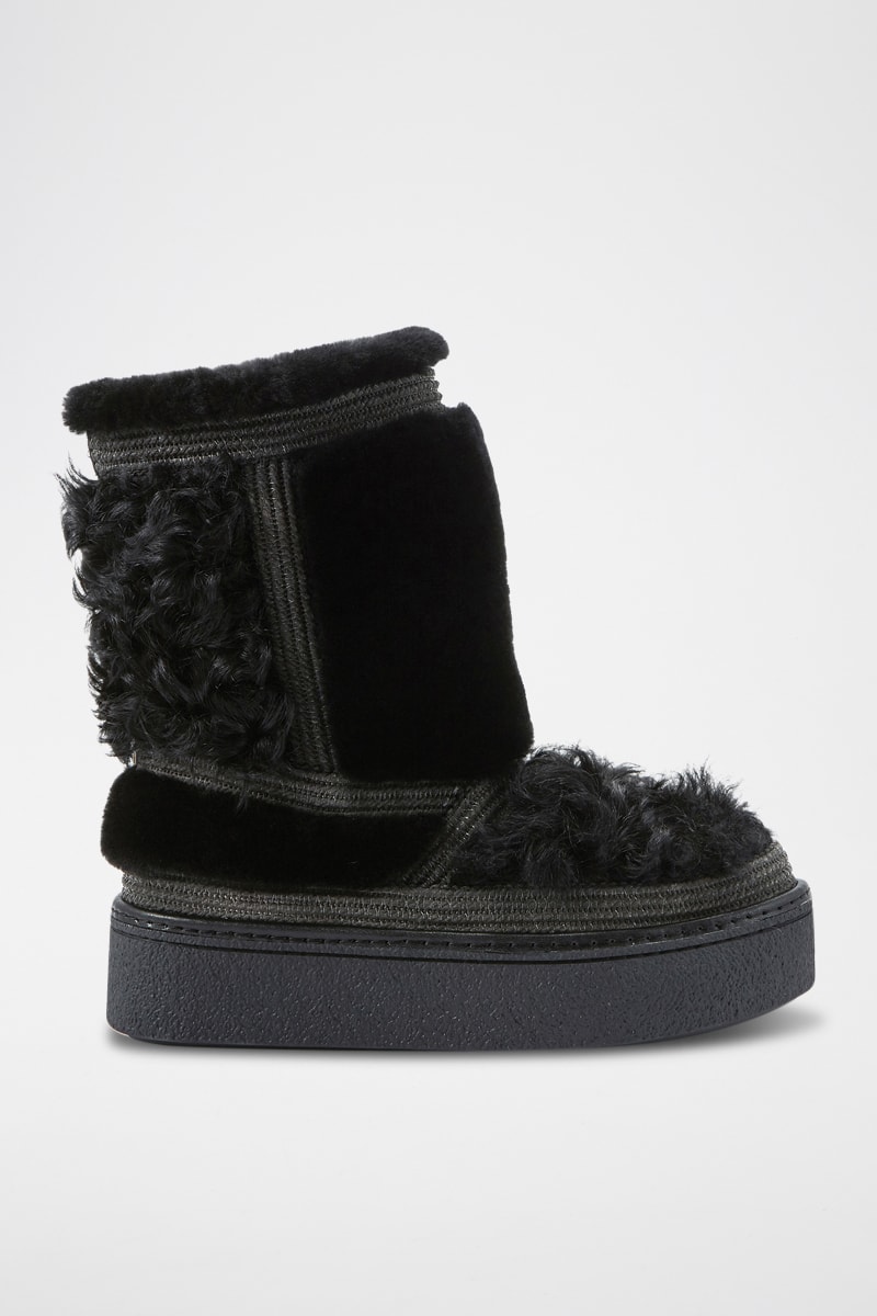 Bottines plateformes fourrées en cuir de mouton nubuck.