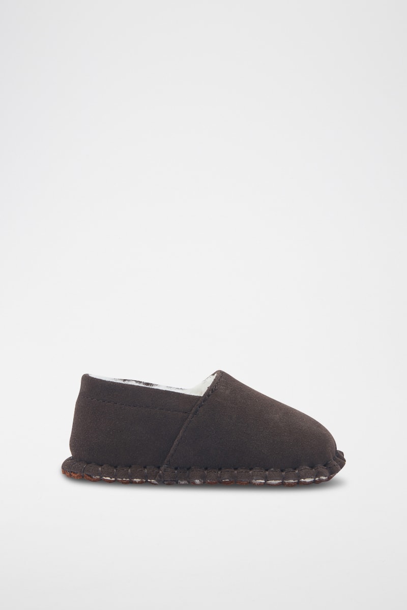 Pantoufles fourrées en cuir de mouton nubuck - Marron